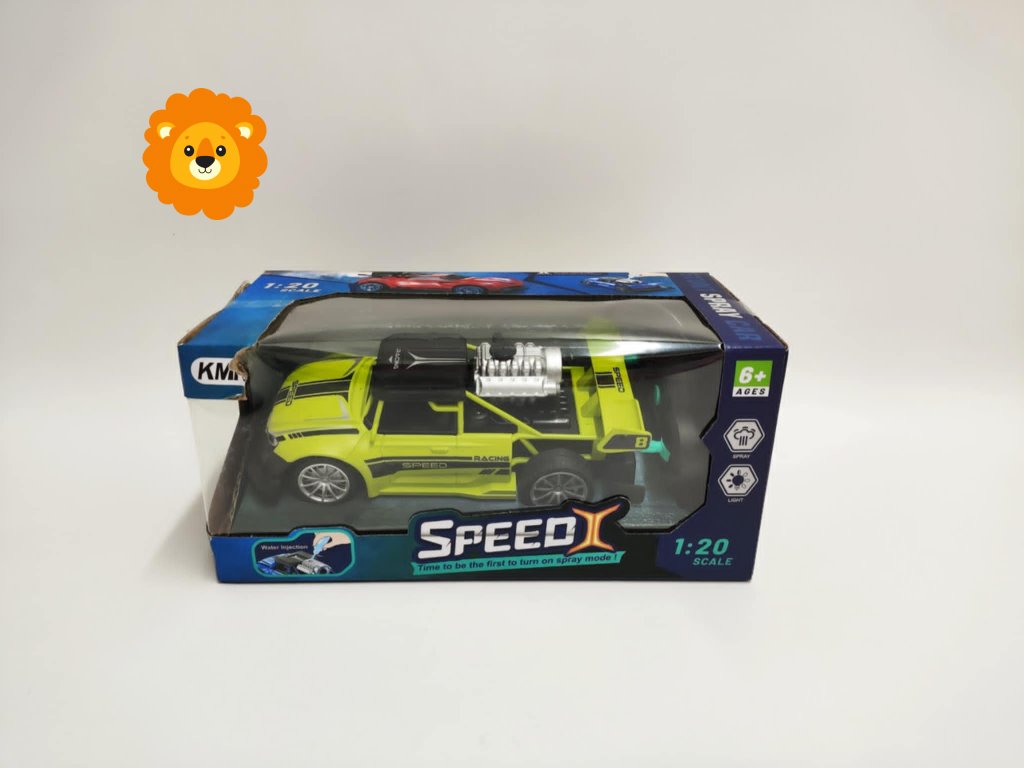 Kouř a světelné efekty. Naplňte čistou vodu, aby auto mohlo vytvořit kouř. Upozornění: Dávejte pozor, abyste při přidávání vody nepostříkali auto. Zabraňte zkratu desky. Pohyb doleva, doprava, dopředu, dozadu. Maximální rychlost 8 km/h. Frekvence 40 MHz, frekvenční pásmo 40–40.680 MHZ, maximální radiofrekvenční výkon 9.99 mW, dosah dálkového ovládání 15m.