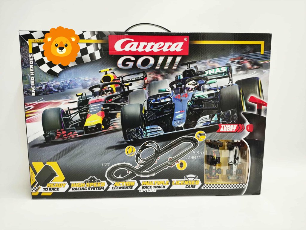 Autodráha Carrera GO!!! 62524 Racing Heroes 5,3m + 2 formule v krabici 58x40x10cm