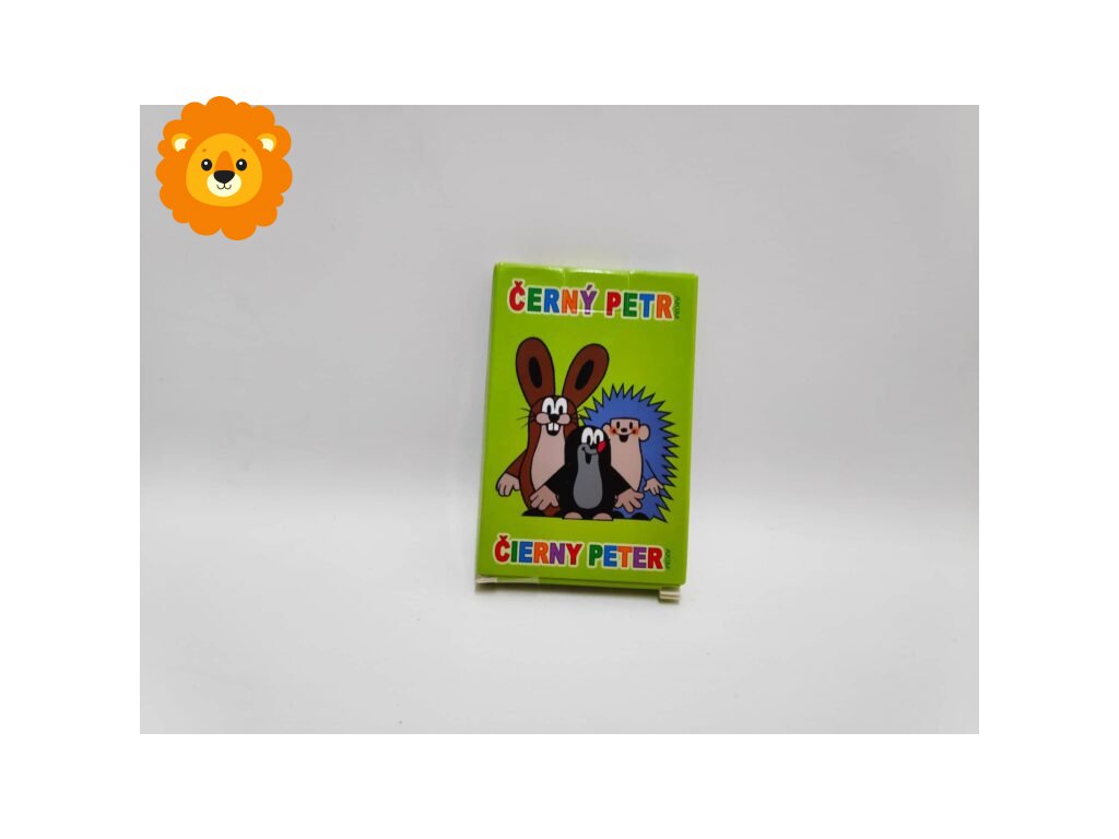 Dětské karty pro hru zvanou Černý Petr s obrázky Krtečka. Krabička obsahuje i podrobný návod a karty mají na rubové straně mírně zdrsnělý povrch pro lepší manipulaci s nimi.