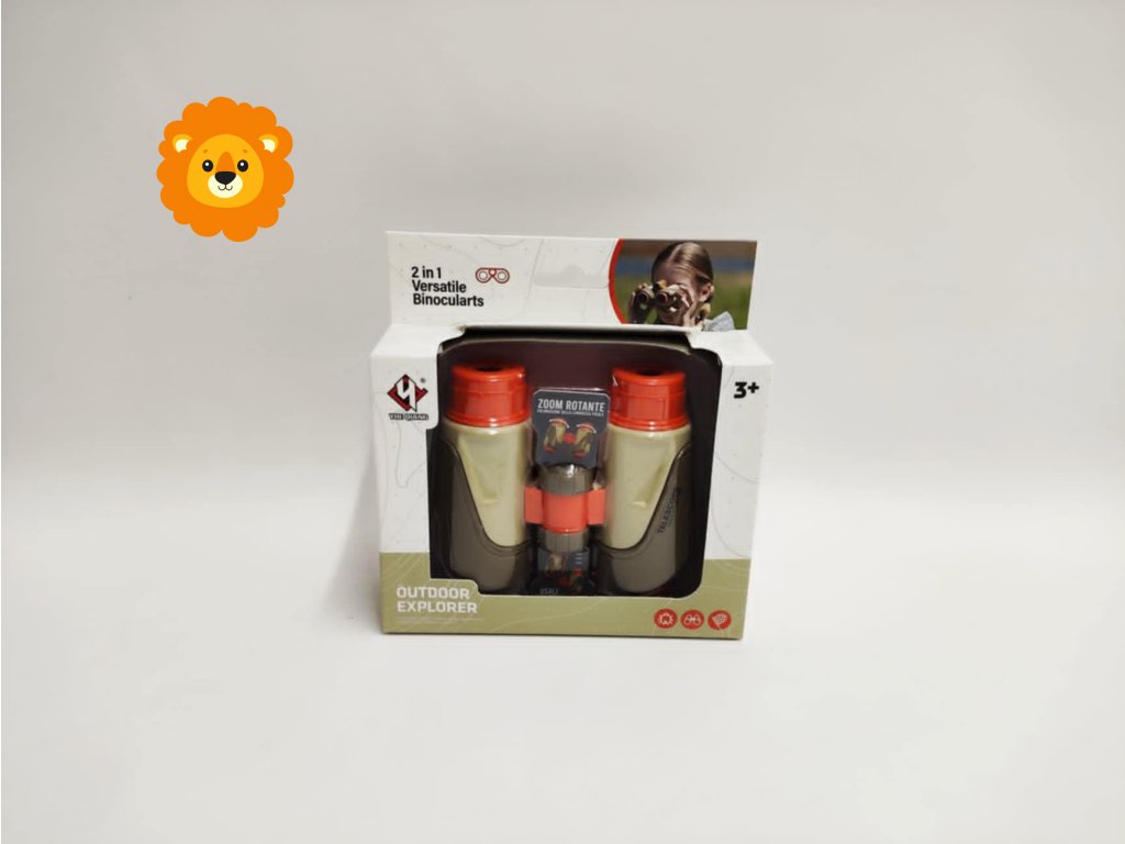 Lehký univerzální dalekohled 2v1. Dopřejte svým dětem kochat se obrazem živých ptáků nebo zvěře při lovu. Povzbudíte je tím k probádání venkovního světa. Dalekohled je možné rozpojit a máte tak 2v1, má otočný zoom a nastavitelnou šířku. Součástí balení je šňůrka. Vhodné pro děti od 3 let.