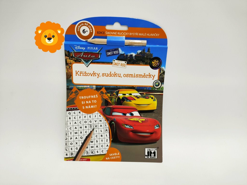 Křížovky, sudoku, osmisměrky s tužkou Auta/Cars 15x21cm