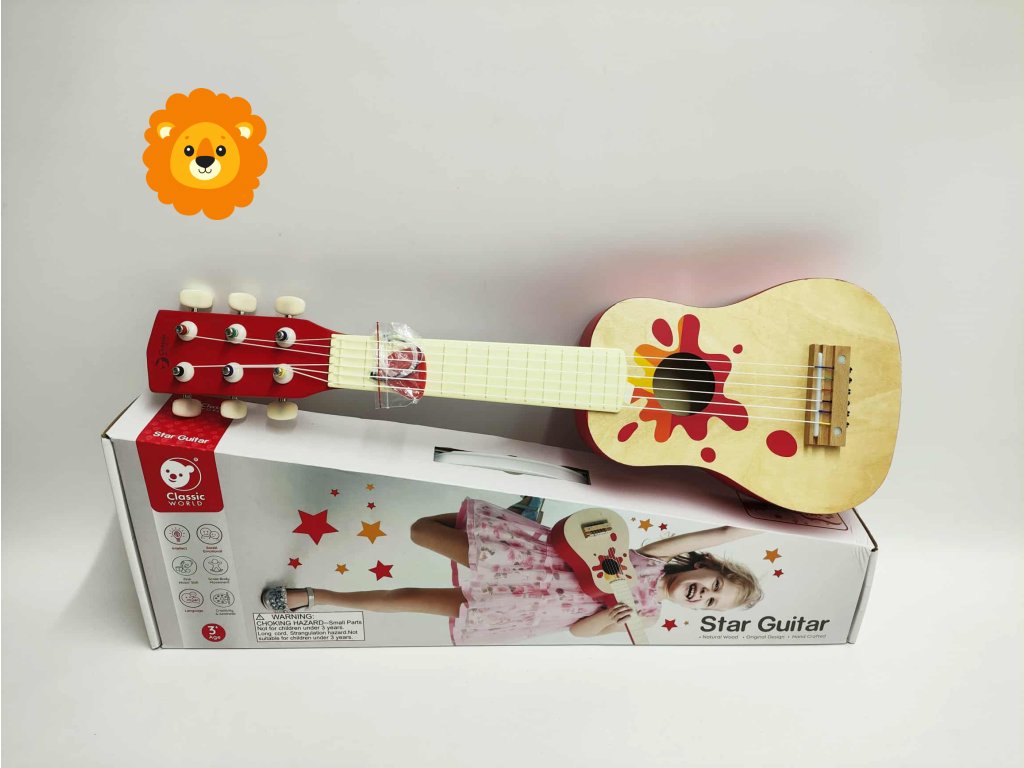 Dřevěná kytara od firmy Classic World umožňuje dětem zvládnout první akordy. Dokonale napodobuje skutečný nástroj.