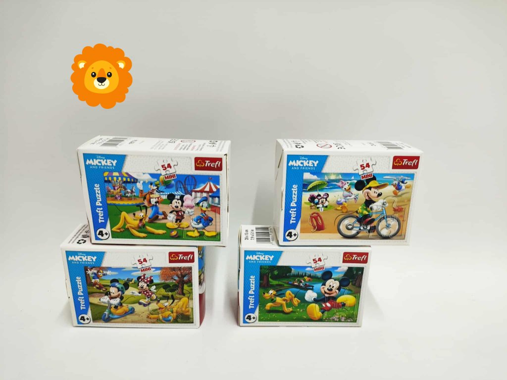 Minipuzzle 54 dílků Mickey Mouse Disney/ Den s přáteli 4 druhy v krabičce 9x6,5x4cm