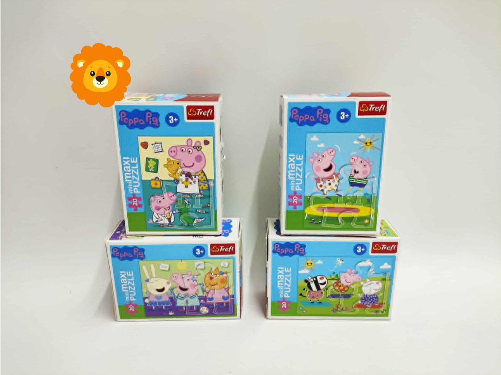 Minipuzzle miniMaxi 20 dílků Prasátko Peppa/Peppa Pig 4 druhy v krabičce 11x8x4cm