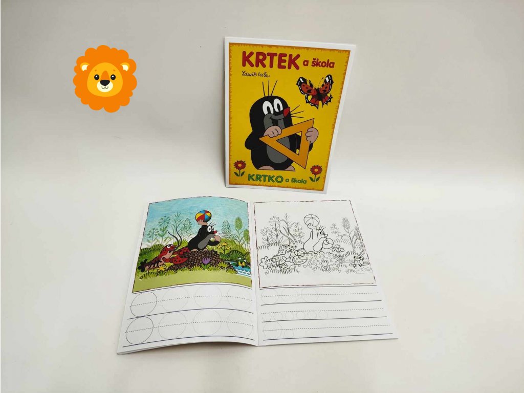 Formát papíru A5. Omalovánky s oblíbeným Krtečkem a školou – trénování prvních čar. Omalovánky s motivy známého hrdiny animovaného večerníčku Krtečka navíc doplněné o řádky na učení čar a trénování psaní.