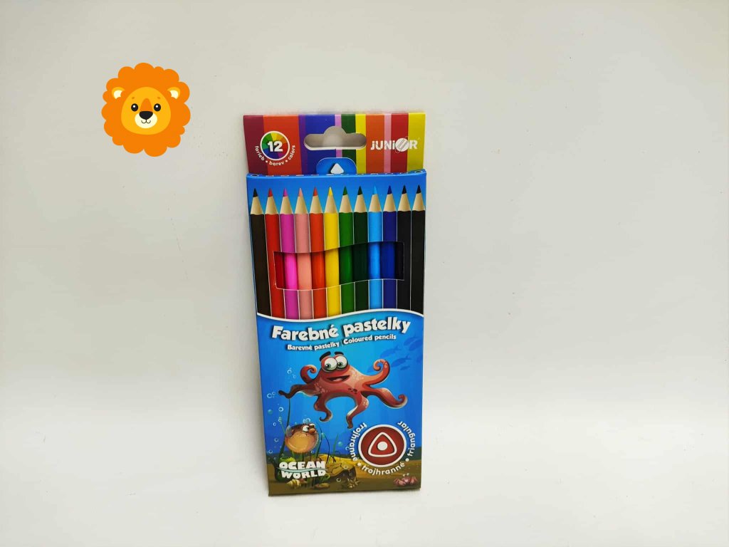 Pastelky barevné dřevo Ocean World trojhranné 12 ks v krabičce 9x20,5x1cm