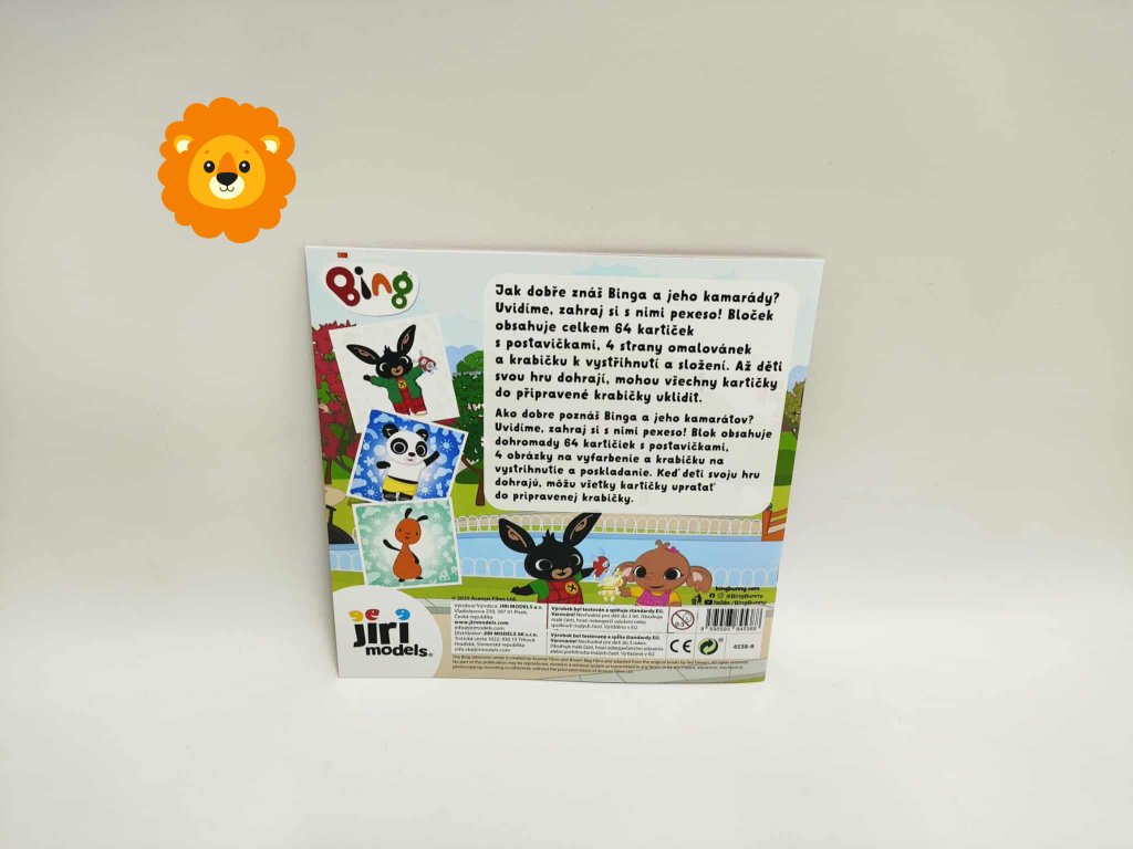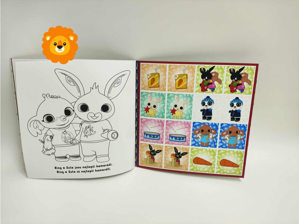 Oblíbená klasická hra v roztomilém sešitovém vydání s motivem Králíčka Binga a jeho kamarádů! Děti si při hraní pexesa rozvíjejí paměť, postřeh a soustředění, zatímco se baví se svými oblíbenými postavičkami z televizní pohádky. Obsahuje 64 kartiček s oblíbenými postavičkami, krabičku k vystřihnutí a složení a 4 listy omalovánek.