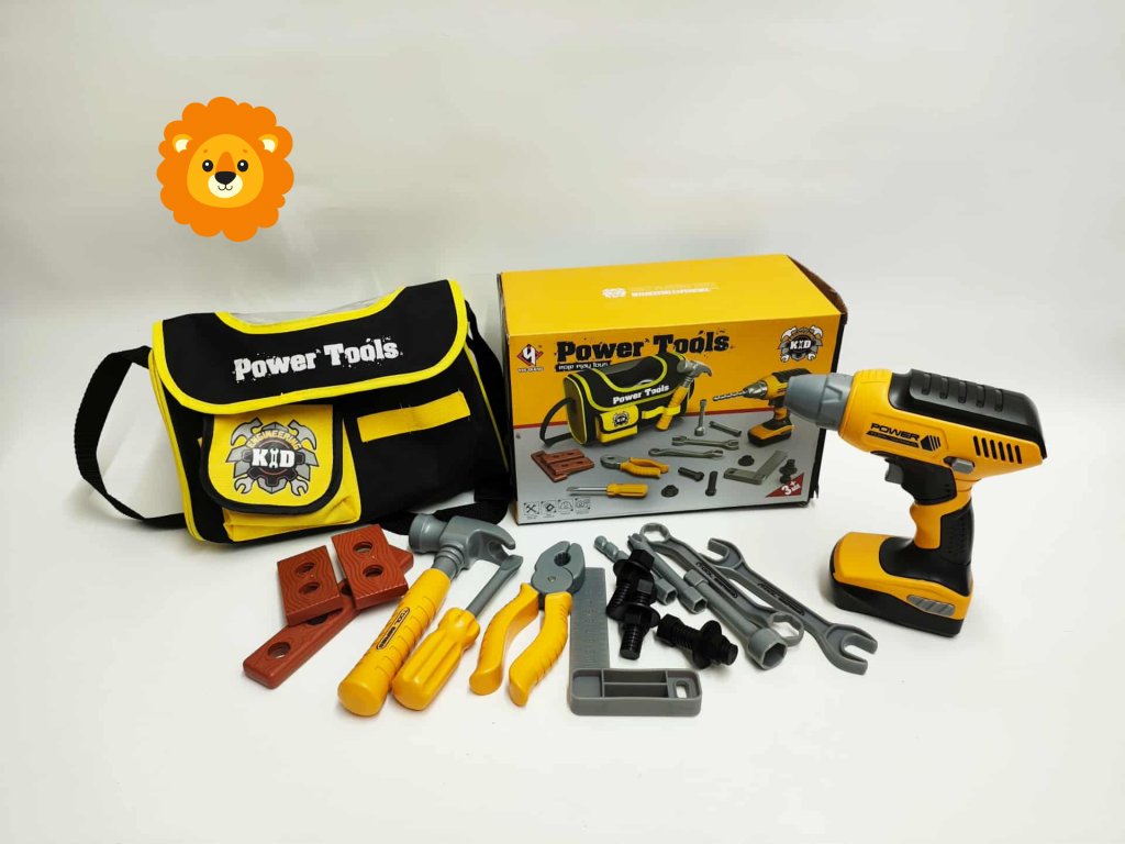 Sada nářadí plast s aku vrtačkou 16x17cm na baterie se zvukem s brašnou v krabici 24x17,5x12cm