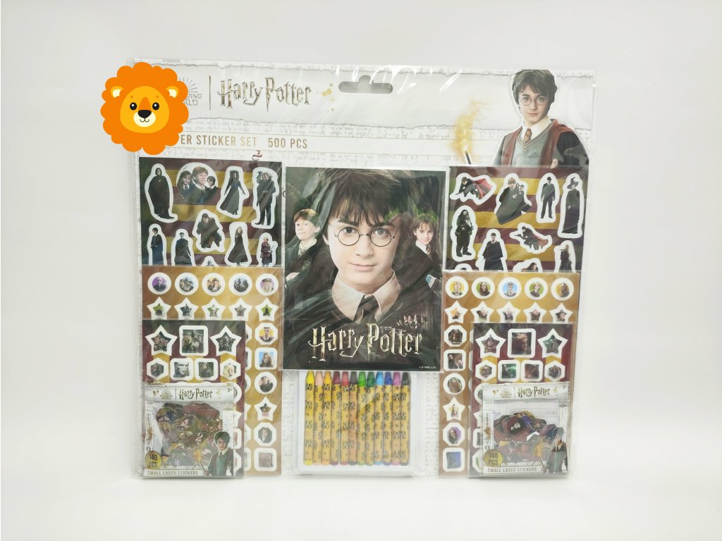 Samolepkový set 500ks Harry Potter s blokem a voskovkami 12ks v sáčku 43x39cm