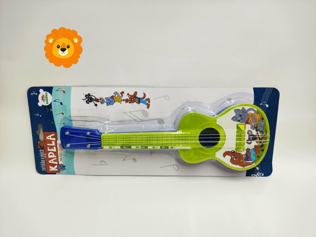 Skvělá hudební hračka pro malé hudebníky, hodí se pro kluky i holky. Tato hračka rozvíjí u dětí jejich zručnost, hudební talent a sluch. Uspořádejte si doma malý koncert, založte hudební kapelu a ukažte všem, jak jste šikovní. Plastové ukulele se čtyřmi strunami, zaujme jistě každého malého kytaristu. Hračka výborně rozvíjí rytmus a učí soustředěnosti. Vyrobeno z odolného a kvalitního plastu. Vhodné pro děti od 3 let.