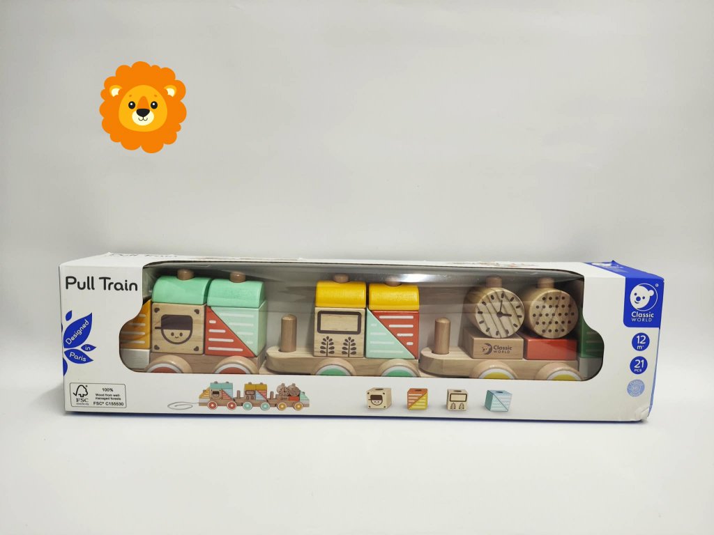 Vlak dřevo tahací 21 dílků v krabici 48x12x8,5cm 12m+